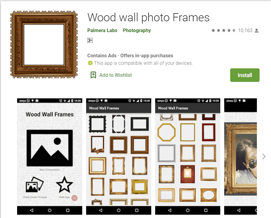 If you love wall frames, Wood Wall Photo Frames is the perfect app for you. You can add various wood wall frames to your photos and make them look attractive. This app is also totally free of cost. ‘Wood Wall Photo Frames’ app occupies less space on your phone as well. The number of frames is comparatively lesser than the other apps. However, if you prefer quality over quantity, this app is for you. Enjoy adding frames instantly using this great app.