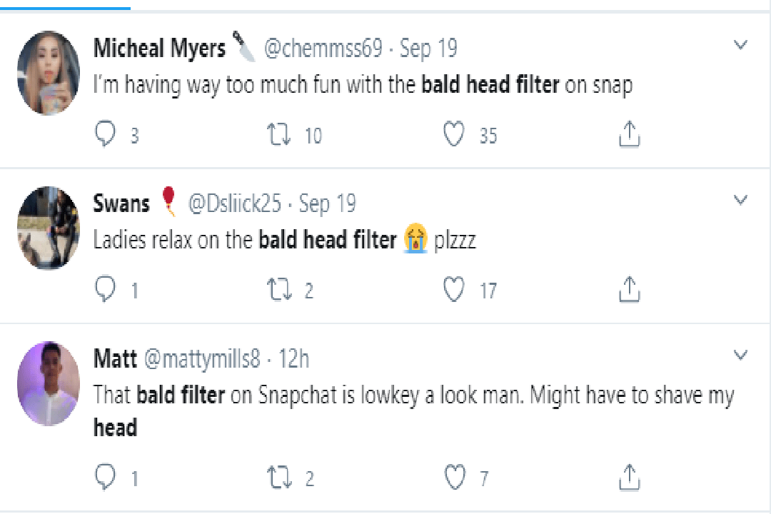 «Лысый фильтр Snapchat — лучшее, что может произойти в 2020 году», — сказал другой.