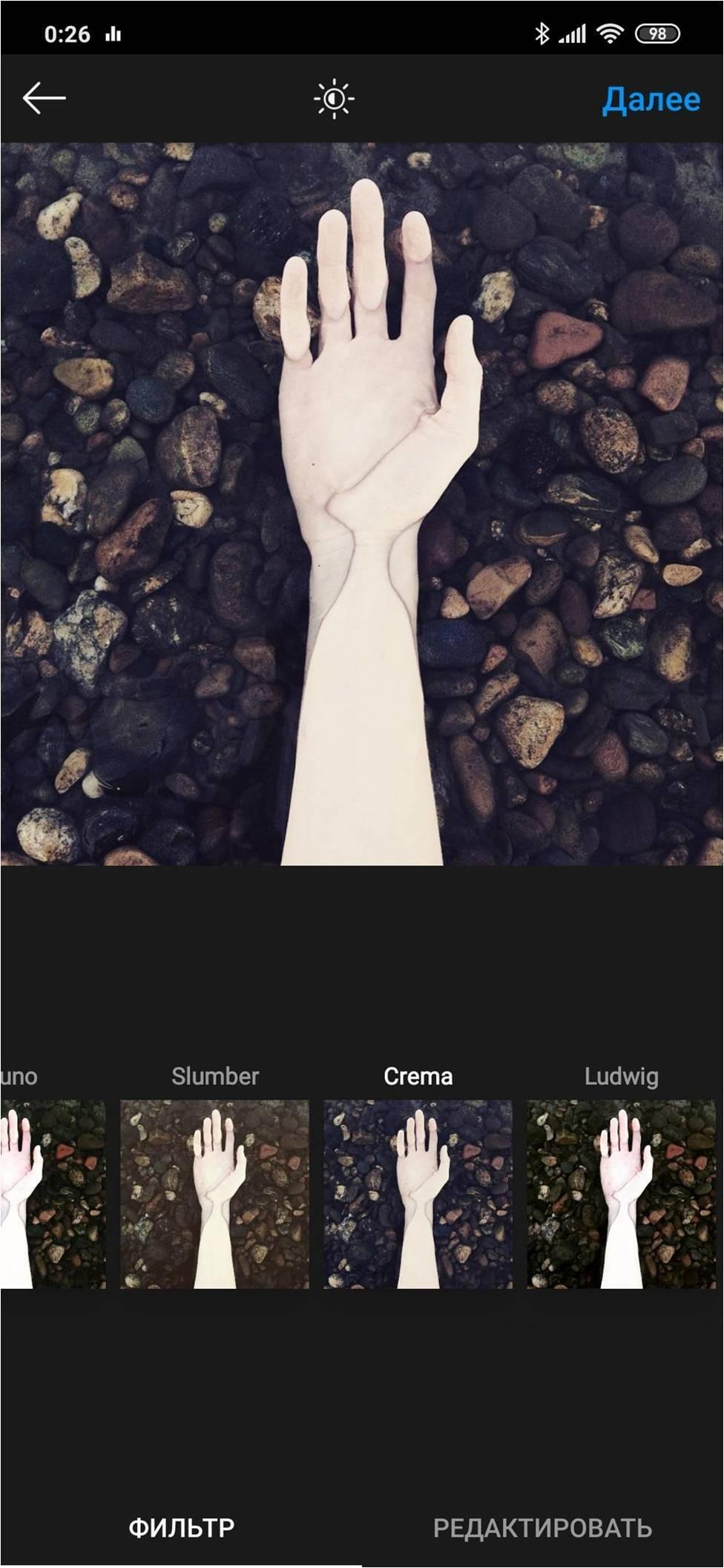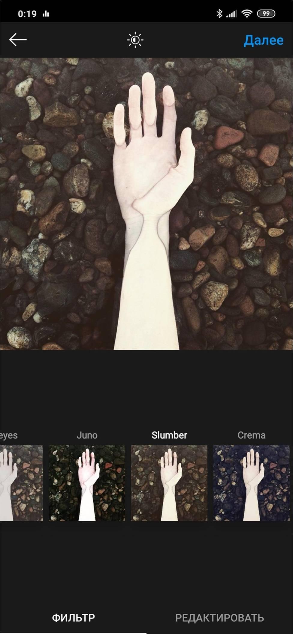 Многие сейчас включают Gingham при обработке, чтобы создать эффект состаривания, потому что он немного размывает картинку. Снимок становится слегка желтоватым. Хорошо он смотрится на тёмных кадрах.