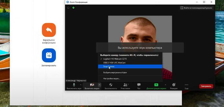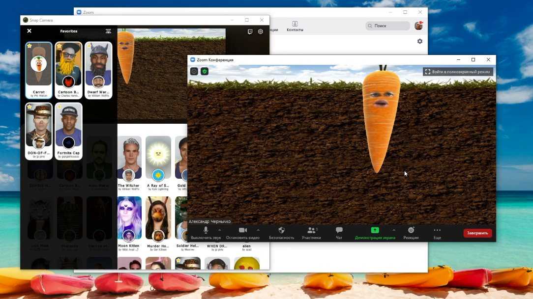Нужное для работы приложение успешно установлено, поэтому пришло время разобраться, как создать маски в Zoom и применить понравившейся эффект. При этом нужно отметить, что фильтр будет активирован не только по отношению к видеоконференции, но и ко всей камере. Следовательно, маска будет заметна и в других ситуациях, когда вы решите воспользоваться веб-камерой. Для настройки предлагаем обратиться к пошаговому руководству: