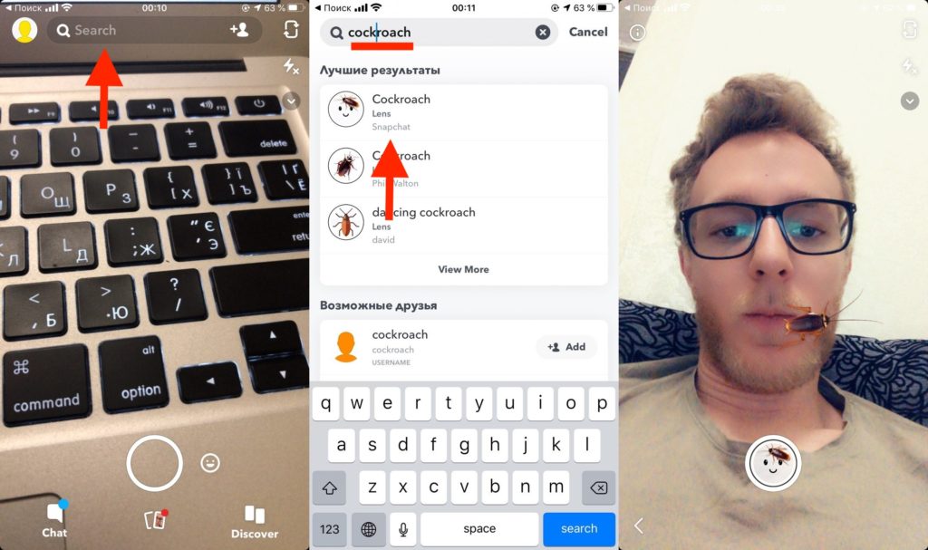 Как найти маску таракана в Снэпчате?