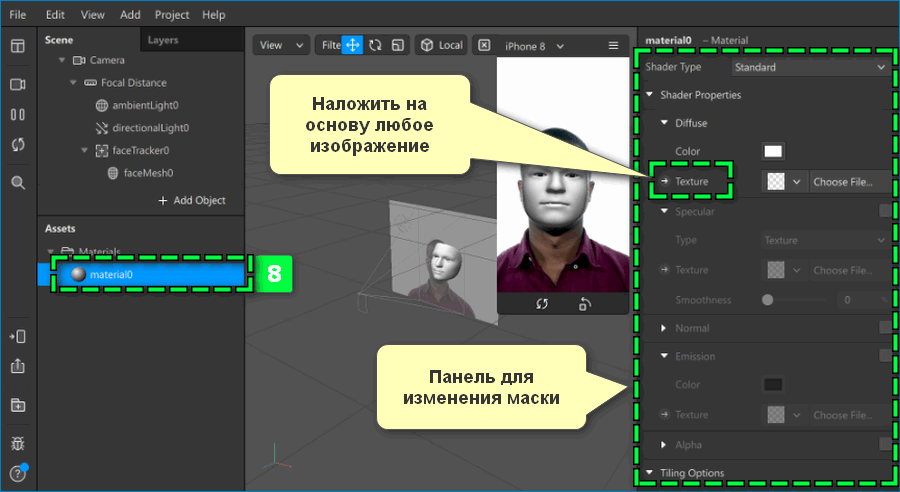 Описанные шаги – обязательный этап к созданию уникальной маски, которая будет накладываться на лицо. После этого можно перейти к созданию эффектов.