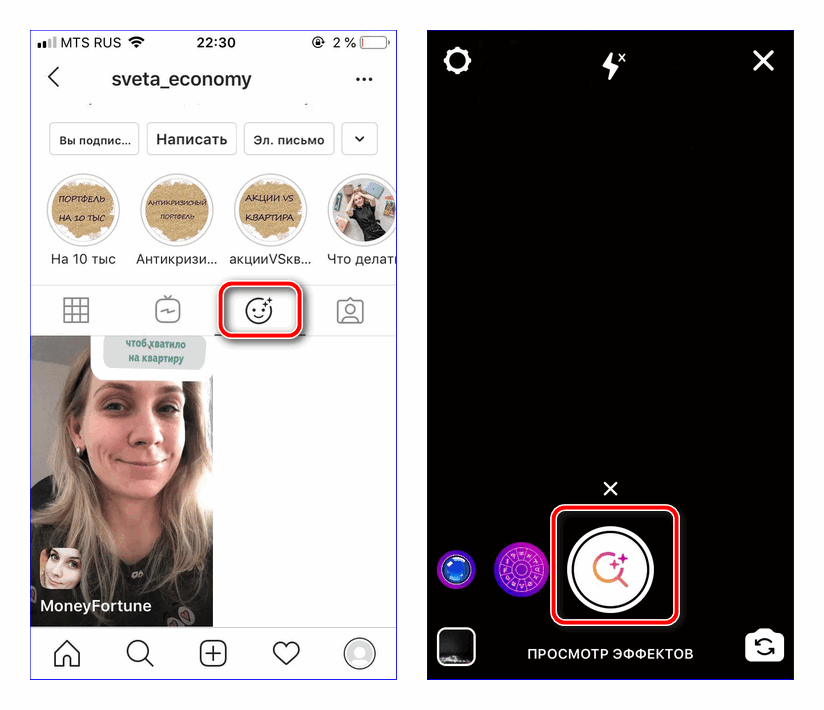 Также есть необычные фильтры, создателем которых являются блогеры или медийные личности. Чтобы надеть их, следует: