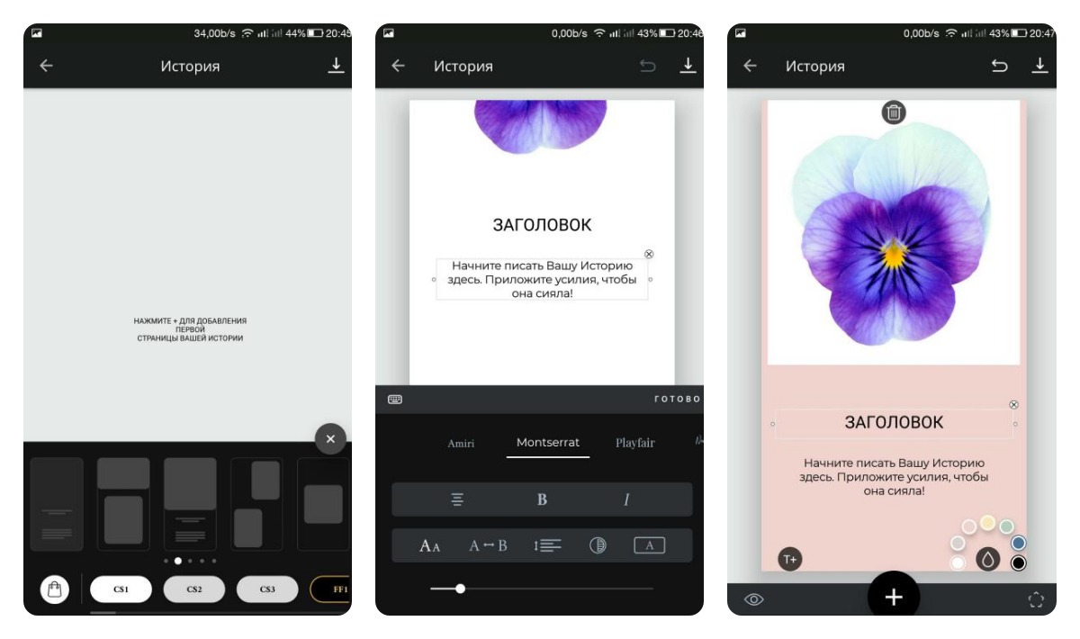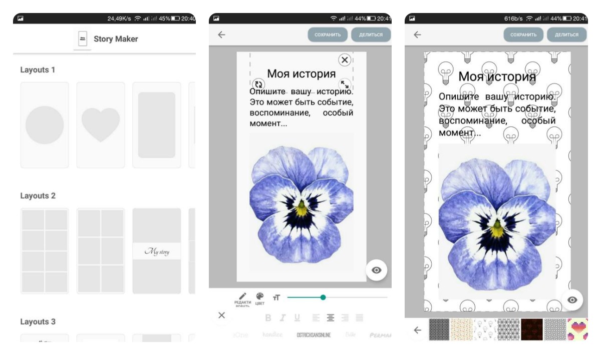 Инструмент для создания Историй, который предлагает неплохой выбор шаблонов, редактор текста, заливку и функцию предварительного просмотра.