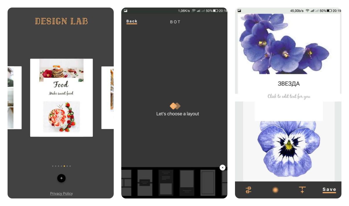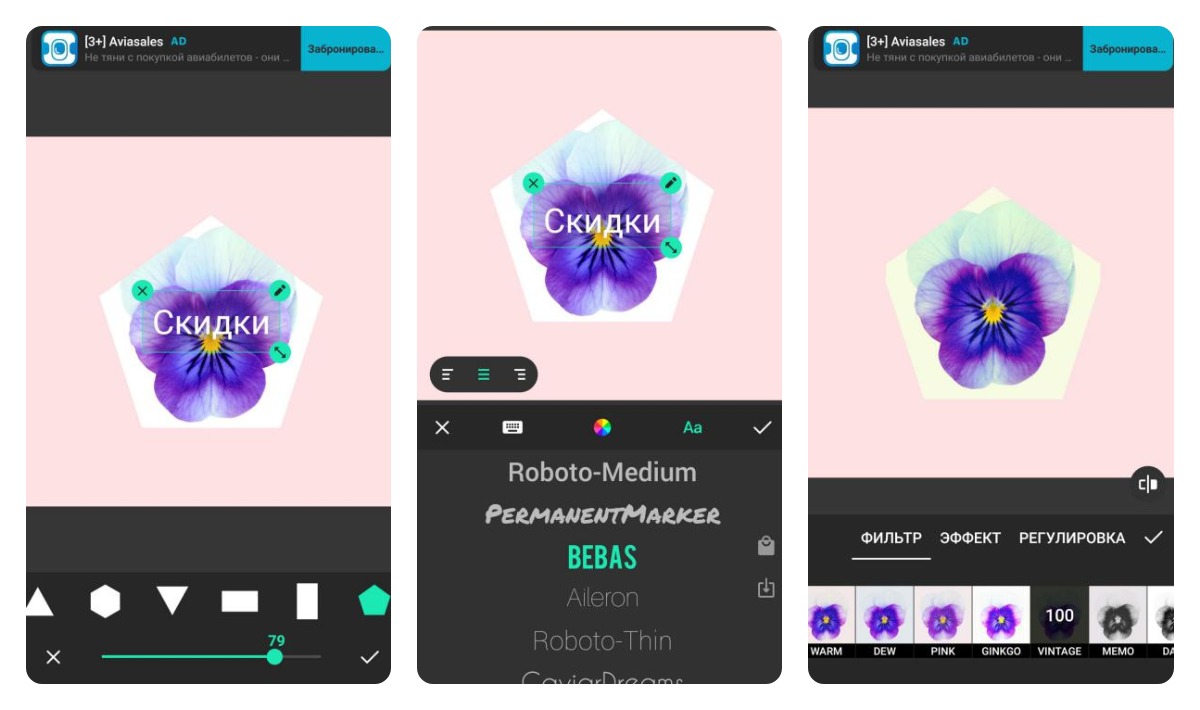 Приложение с хорошим выбором тематических шаблонов. Однако разобраться в его работе не так просто. Помимо стандартных функций добавления текста и фона, инструмент предлагает яркие эффекты и стикеры.