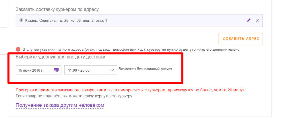 - Выберете пункт «Получение заказа другим человеком при совершении покупки»;