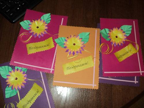 - Открытка, сделанная своими руками. В интернете можно найти множество советов, как сделать быстро необычную красивую открытку в домашних условиях. Не забудьте написать самые тёплые поздравления и пожелания с праздником.