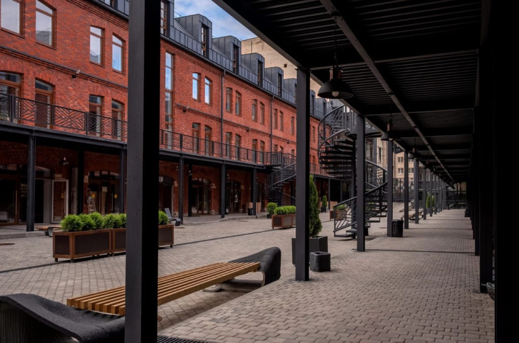 В ближайшем будущем помещения зданий креативного кластера займут многофункциональные офисы, рестораны, высокотехнологичные переговорные комнаты, магазины, кафе. На стендах внутреннего двора развешены афиши предстоящих концертов хип-хоп- рок- и джазовой музыки.