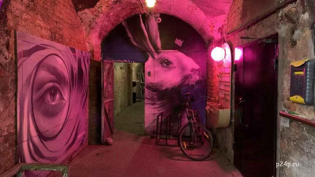 Западнее Московского вокзала находится креативный кластер, позиционирующий себя как свободное пространство «Пушкинская 10». История арт-центра, носящего название улицы, на которой он расположен (читайте: «Прогулка по Пушкинской улице»), началась в 1989 г., когда в заброшенном здании обосновались представители советского андерграунда.