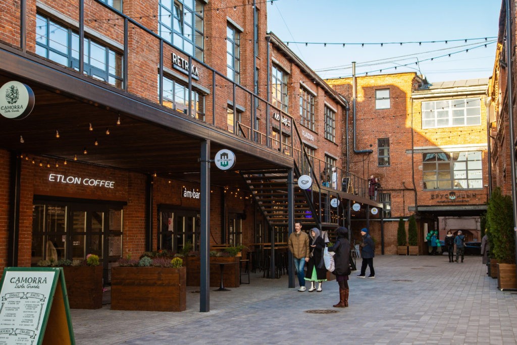 На территории кластера расположено пять баров и кафе: Crevette (морепродукты), Camorra (итальянская кухня), Ambar (ближневосточная), Etlon Coffee (фирменный кофе), DaDaBar (российский сидр). Для деловых людей работает площадка коворкинга, предназначенная для обмена творческими проектами дизайнеров, архитекторов, инженеров.