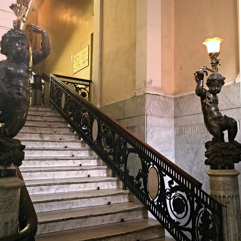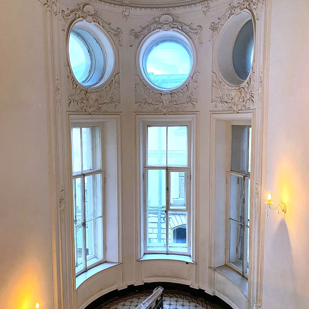 В городе есть несколько парадных, куда можно свободно попасть и полюбоваться творениями архитекторов.
