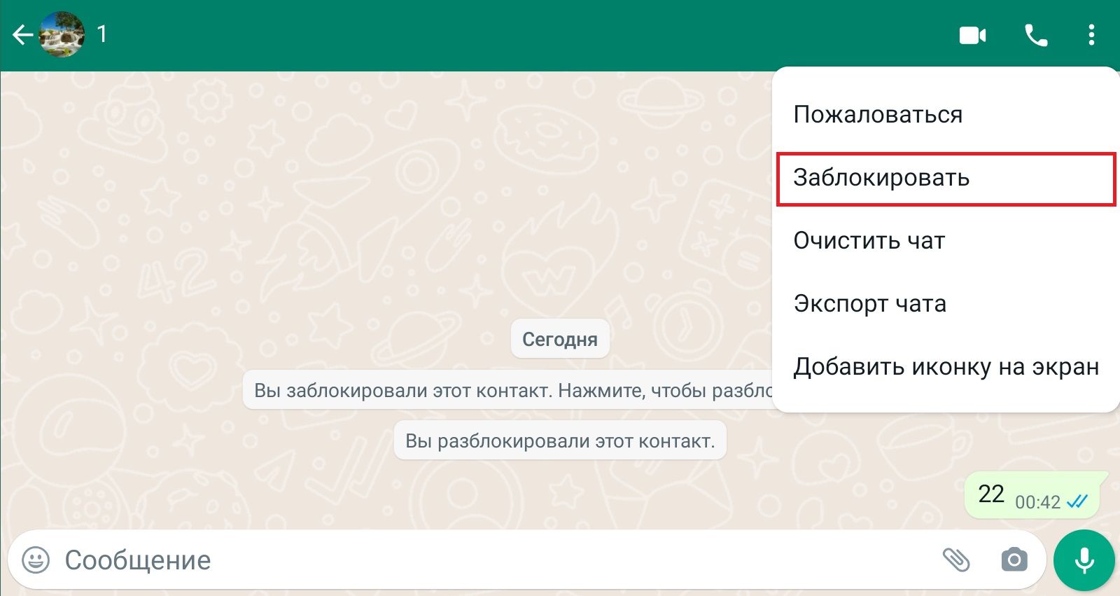 5. Если вы решите снять блокировку с пользователя, это можно сделать, выбрав чат с ним и нажав там соответствующий пункт.