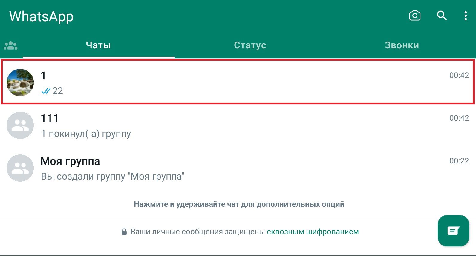 - зайти в WhatsApp;