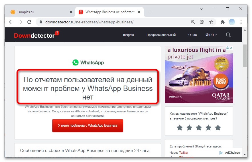 Если на сайте Downdetector вы не обнаружили никаких отметок о существующих проблемах у других пользователей в вашем регионе или масштабно по всему миру, придется либо ждать, либо рассмотреть возможность наличия других проблем в работе мессенджера, о которых рассказано в статье.