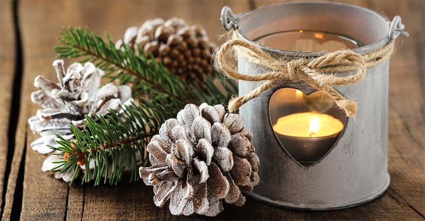 Еще одним вариантом созданием свечи может быть декорирование готовых подсвечников шишками, веточками. Необычные свечки получаются из стеклянных баночек. Для этого на дно баночки насыпьте сахар или искусственный снег. Верх декорируйте кружевом и прикрепите несколько шишек. Обработайте композицию аэрозолем со снегом.