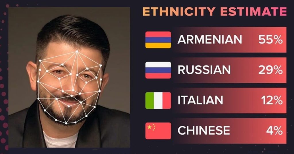 Судя по результатам такого тестирования Максим Галкин на 46% испанец, Ольга Бузова на 38% русская, Ксения Бородина на 46% армянка, а Михаил Галустян армянин на 55%. Теперь узнать больше о составляющих частях своей национальности можете и вы!