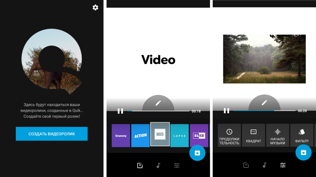 Приложение Quik позволяет создавать небольшие ролики с минимальными усилиями.