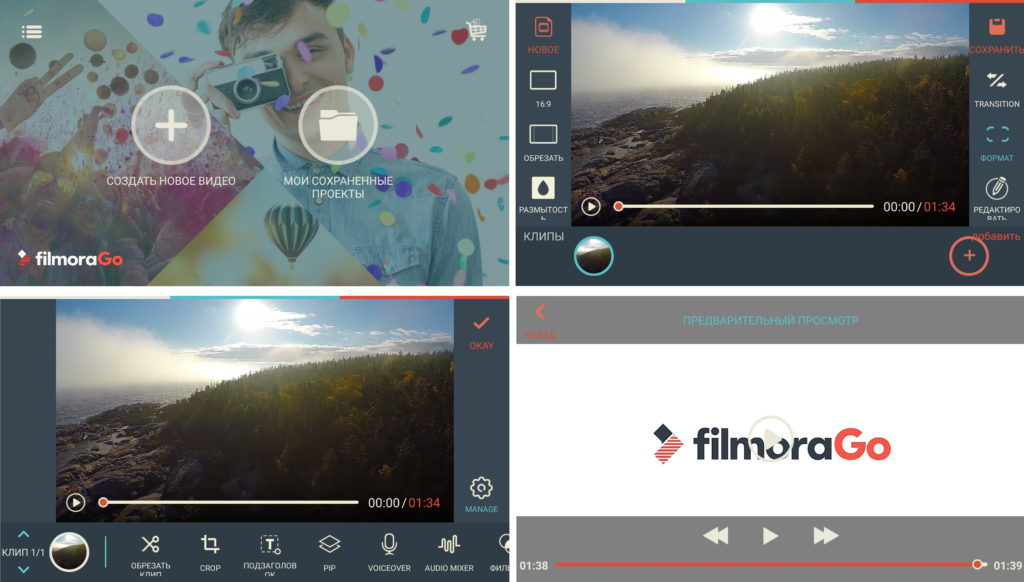 Неплохое приложение для редактирования видеороликов. Подойдет как для базовой обработки, так и для более продвинутого подхода. Возможности приложения: