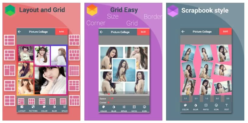 Серьезная мобильная программа, которая имеет несколько десятков разных инструментов и функций. Среди прочего редактор поможет и в создании фотоколлажей с помощью большого количества шаблонов и макетов. Можно менять фон, толщину рамки, размер фото и сетки.