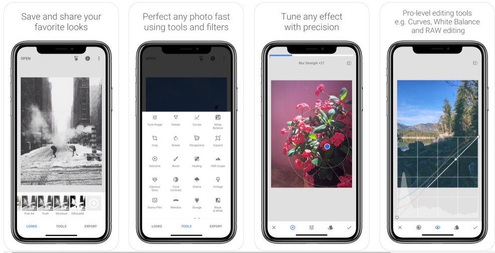 SnapSeed. Здесь отличительным моментом становятся стикеры с текстом. Но рамки и здесь есть, разумеется. Developer: Price: Free