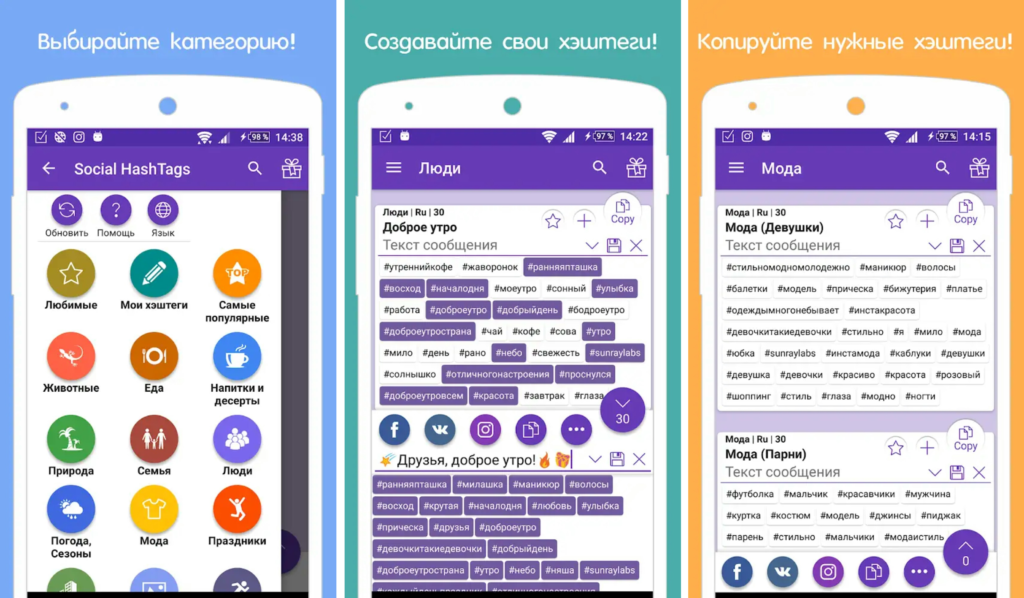 Приложение реализовано только для устройств на Android. Аналог для iOS-устройств — TagsDock (хэштеги на английском языке).
