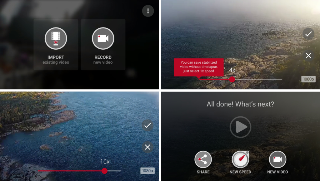 Приложение для Android-устройств от Microsoft. Позволяет создавать ускоренные видео в формате time-lapse. Можно снять видео прямо из приложения или использовать готовое видео. Затем выбрать нужное значение ускорения: от 2х до 32х. Приложение подойдет: