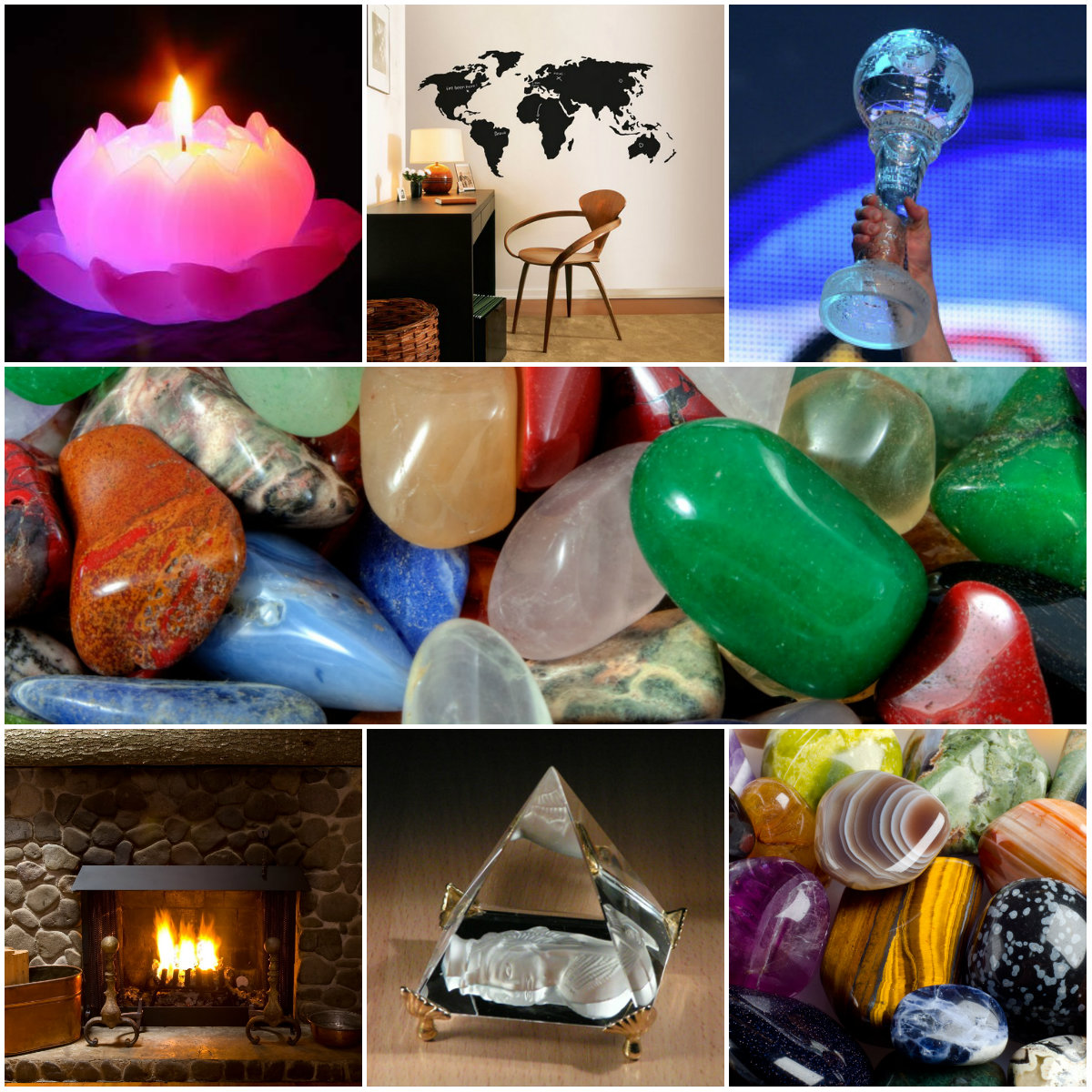 Можете разместить в хрустальной вазе самоцветы, ведь, как известно, они воплощают собой силу Земли. Свечи, камин – тоже подойдут. Только не забывайте их зажигать.