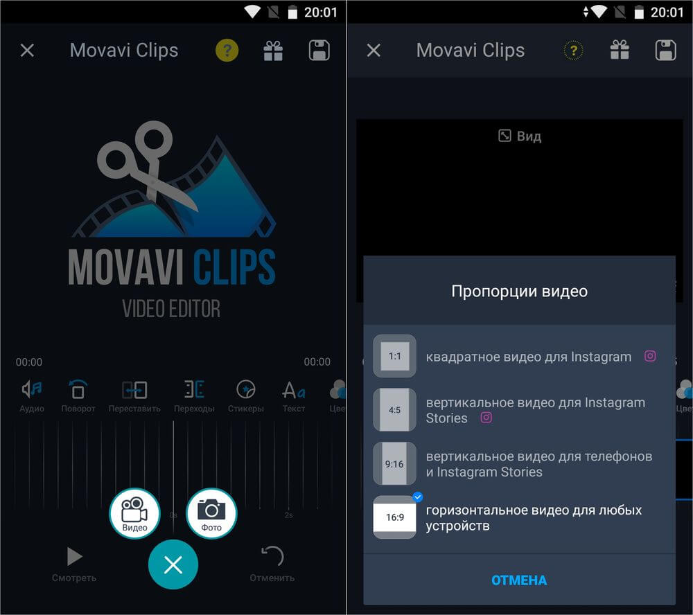 VivaVideo — удобное приложение, позволяющее быстро создавать коллажи, нарезки, накладывать эффекты и музыку. Здесь доступны все базовые функции для видеообработки, позволяющие создать свой мини-фильм.