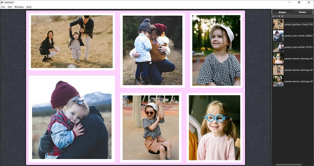 Выбираете фото с галереи и переносите его в любой из доступных макетов. И также присутствует очень полезная вкладка Faces, которая позволяет автоматически искать фото с лицами людей.
