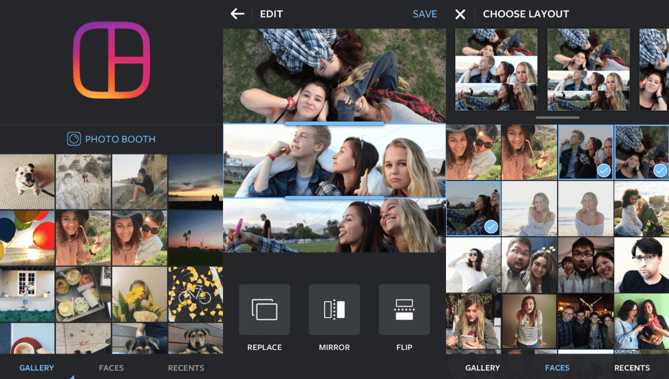 Если вы любите, чтобы все было просто, этот бесплатный создатель фотоколлажей от Instagram идеально вам подойдет. У него не так много функций, как у его аналогов.