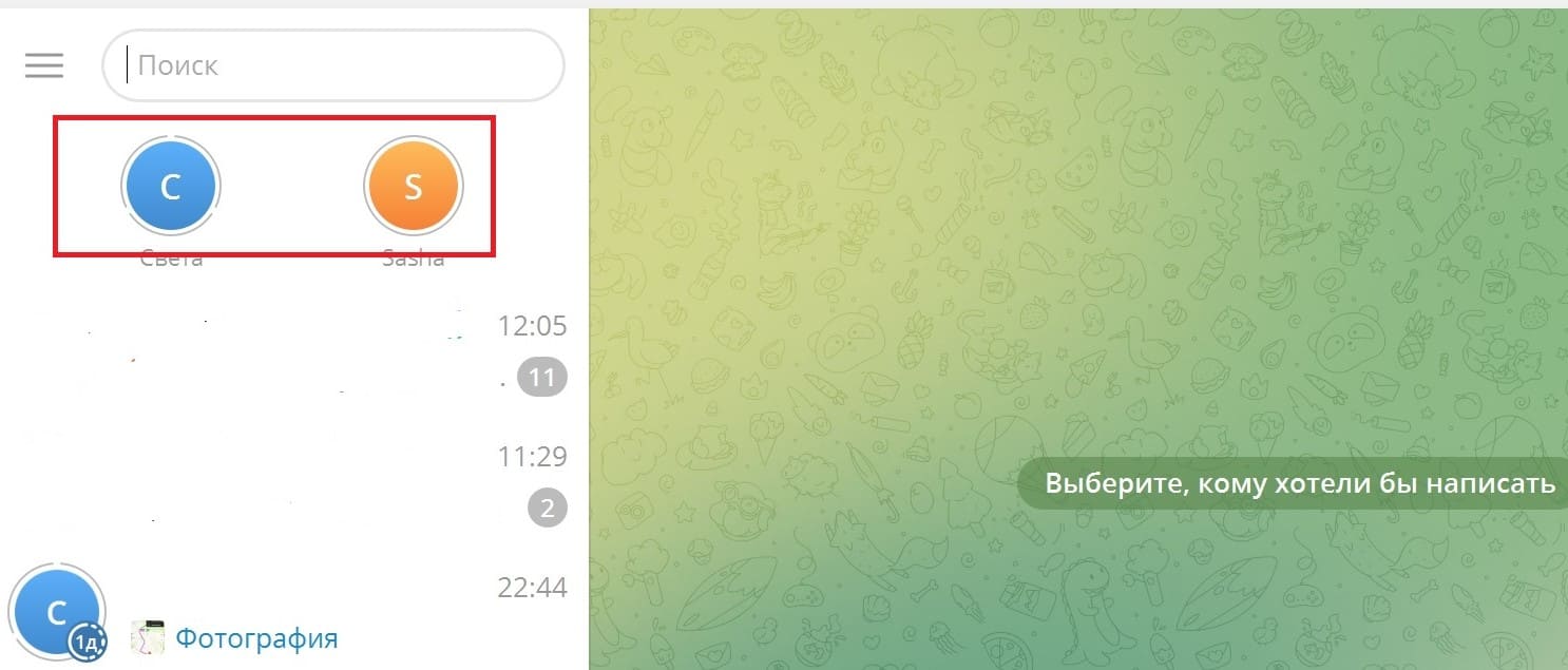 В десктопном приложении они размещаются в строке поиска с правой стороны. При нажатии на них аватарки контактов со сторис раскрываются в панель чуть ниже поля ввода запросов.