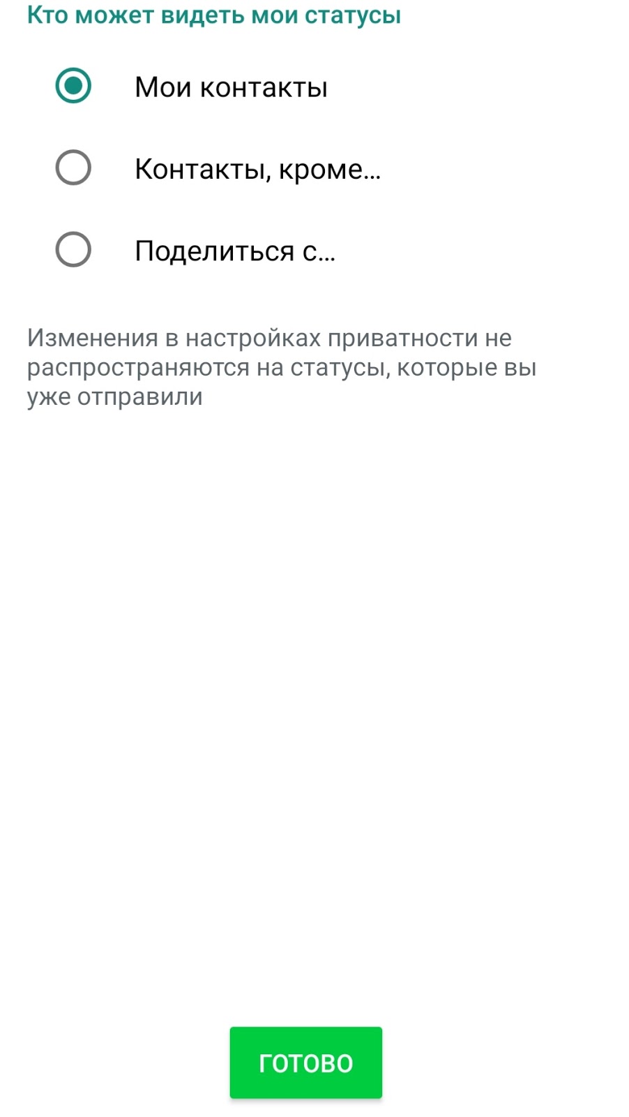 В данном мессенджере не предусмотрен общий поиск, поэтому истории в Вотсапе видят только контакты. Однако их у вас может быть много, например, все коллеги, одноклассники, одногруппники, родственники и т.д. Возможно, вы хотите выложить историю только для своих друзей, чтобы у рабочих контактов и партнеров по бизнесу она не показывалась. На этот случай есть настройки приватности статуса.