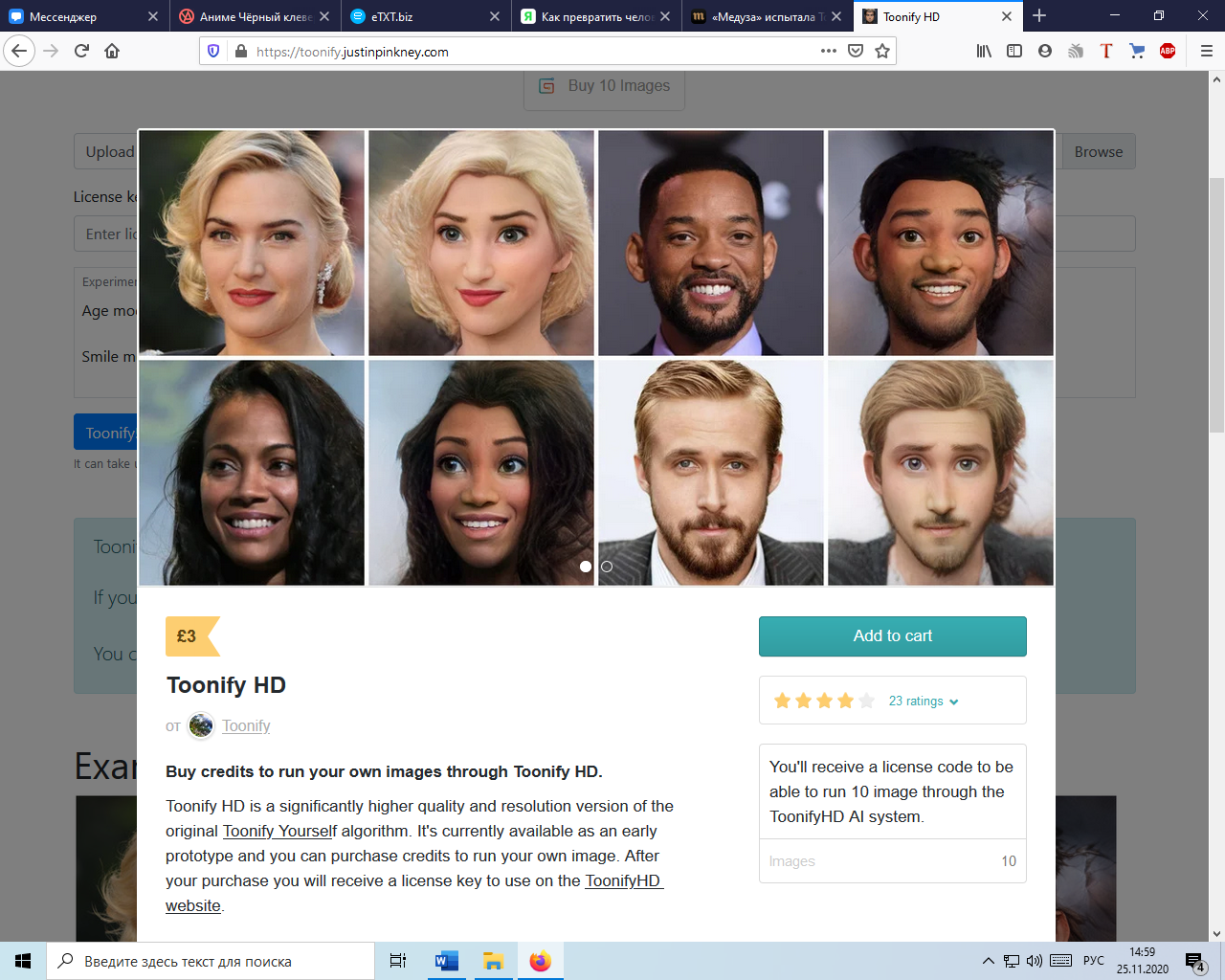Toonify – это платформа, использующая нейронные сети для преобразования человеческого портрета в персонажа из вселенной Disney. Для получения результата нужно загрузить фотографию и дождаться, пока результат будет выведен на экран (иногда приходится сначала несколько раз обновить страницу).